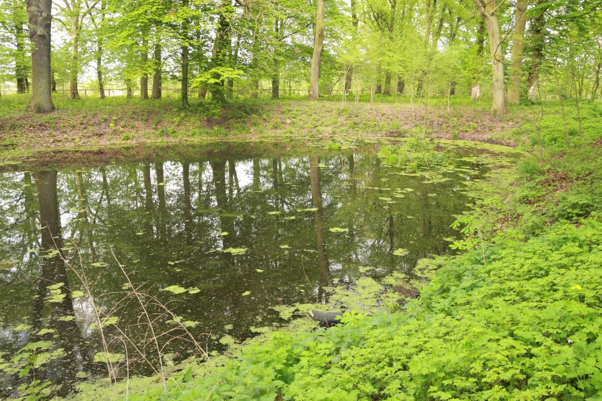 Het terrein is omgeven door een park, dat aan de noordzijde wordt begrensd door de overblijfselen van het vroegere landgoed. Aan de zuidkant loopt het park af naar de vijvers, waarna bossen en weiden volgen. Een deel van het park heeft een natuurlijk karakter. De totale oppervlakte van het park bedraagt 66.442 m2.