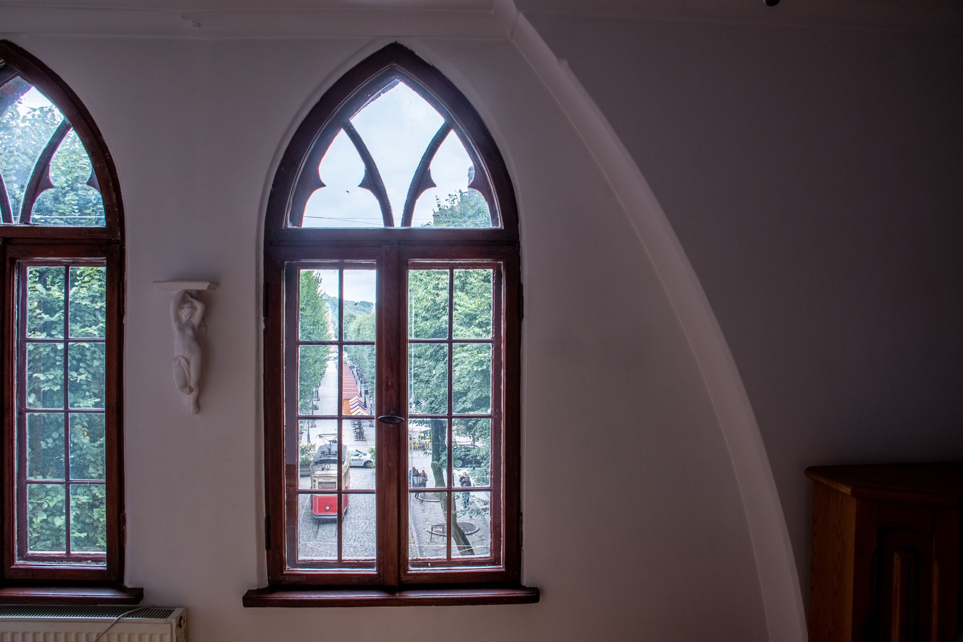 Op elke verdieping zijn er ramen met uitzicht op de groene boulevard van de Novobramska Straat. Dit is afgesloten voor autoverkeer.