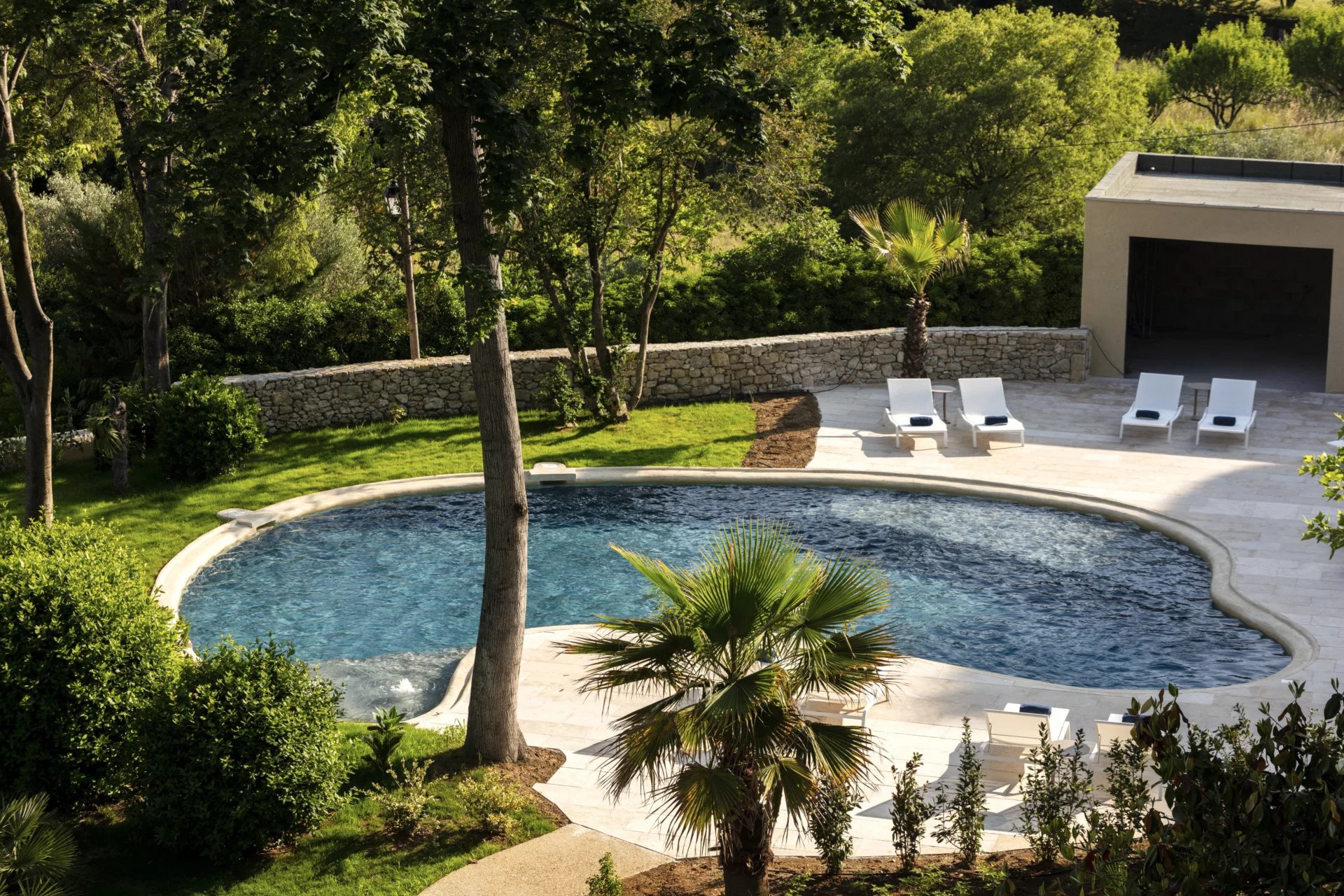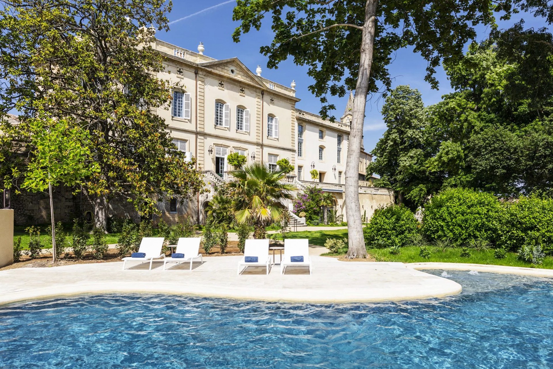 De 16 suites – waaronder een hoofd suite van 112 m² met uitzicht op het park en de heuvels van de Gardon – zijn allemaal voorzien van volledig uitgeruste badkamers en woonruimtes. Sommige hebben een eigen keuken en kunnen worden gebruikt als onafhankelijke appartementen.