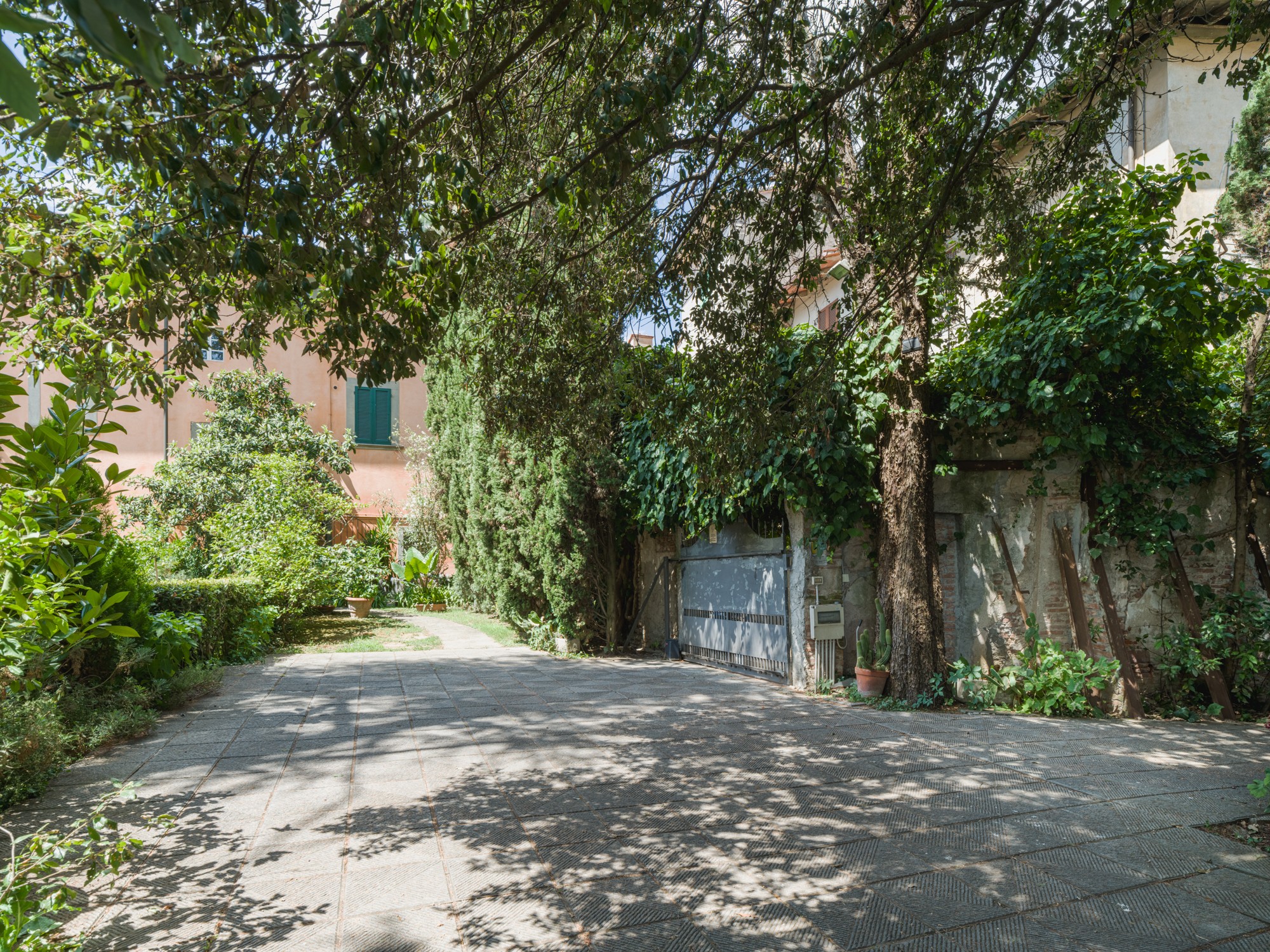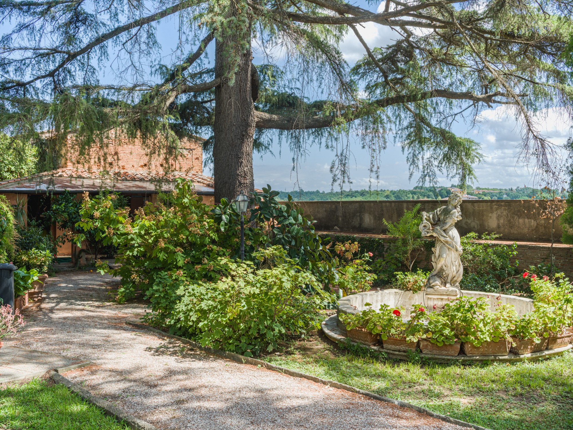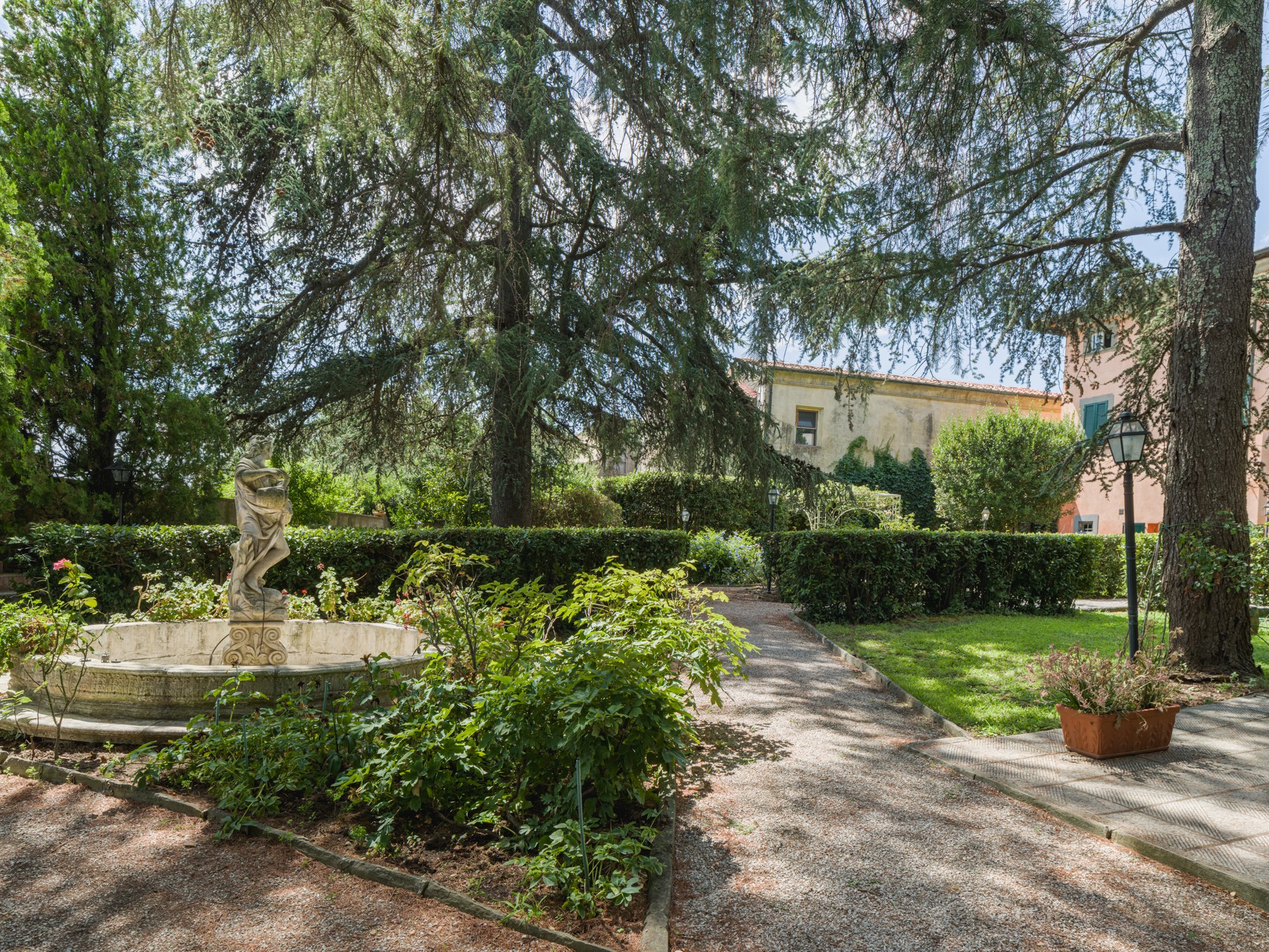 Het landgoed, met oude bomen, strekt zich uit als een park en biedt een wijds uitzicht over het Toscaanse landschap. Direct aan het gebouw grenst een formele Italiaanse tuin. Er is toestemming verleend voor de bouw van een zwembad (15 x 8 m, diepte 1,6 m). Verder zijn er oppervlakten beschikbaar voor tuin- of recreatief gebruik.