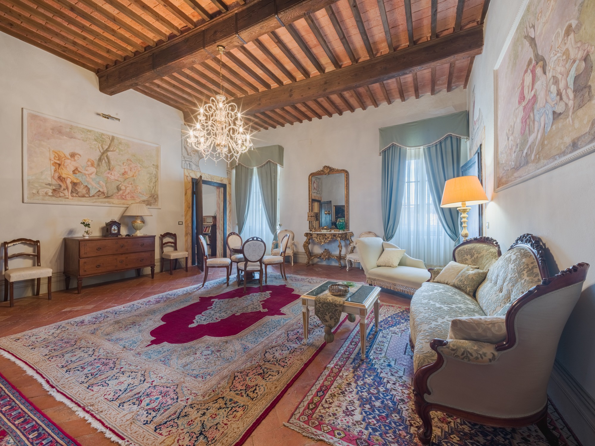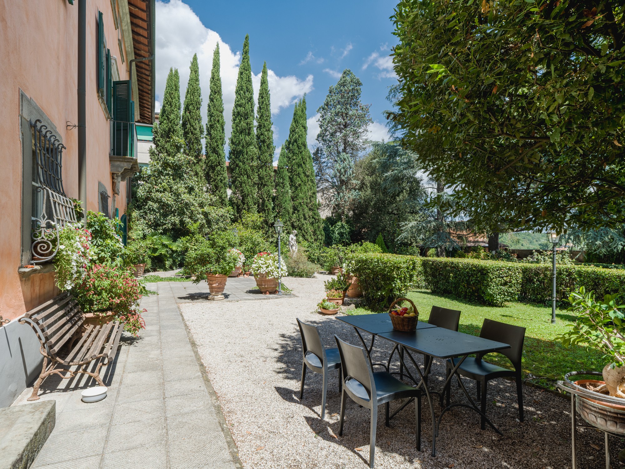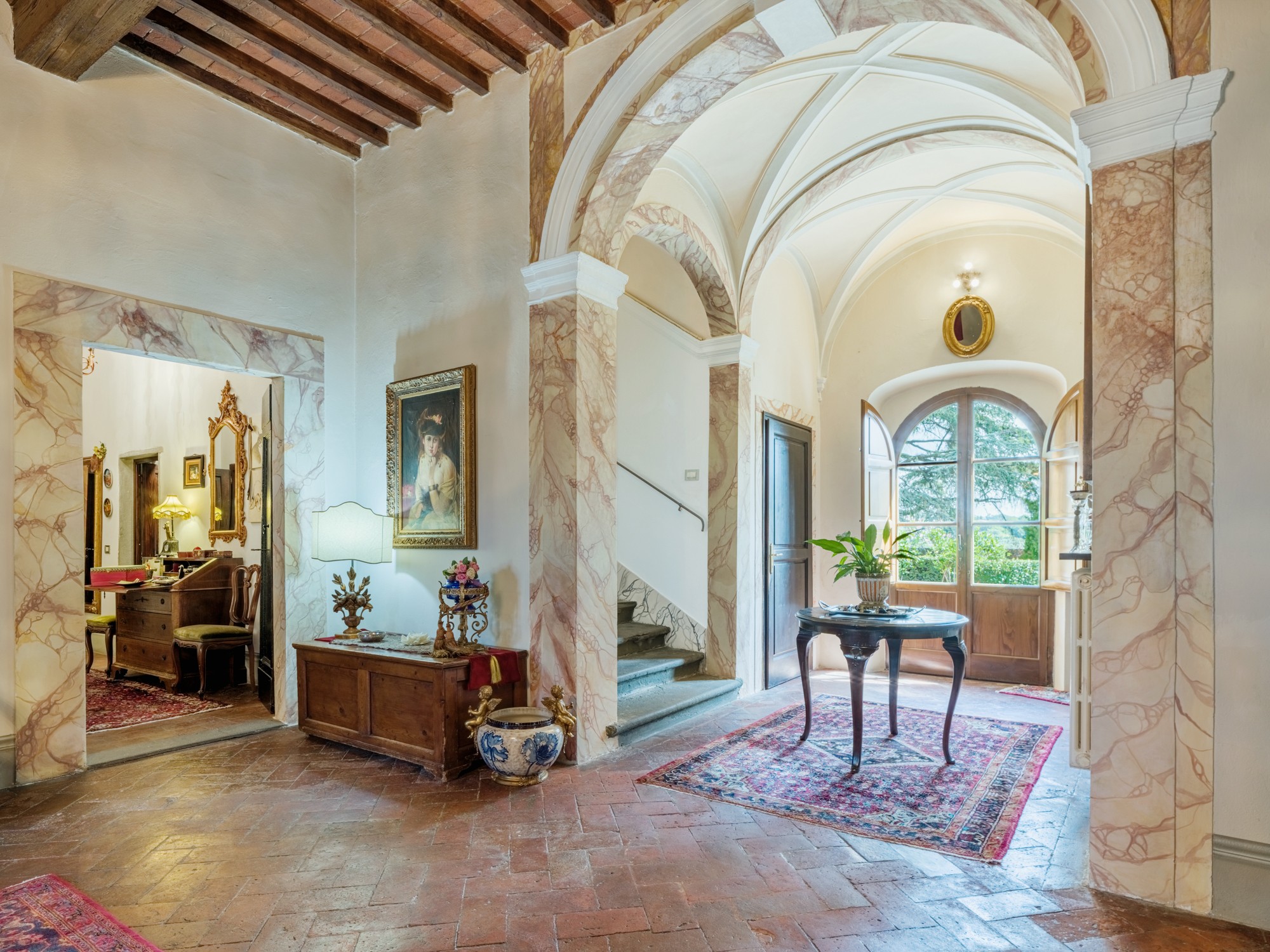 Het landgoed, met oude bomen, strekt zich uit als een park en biedt een wijds uitzicht over het Toscaanse landschap. Direct aan het gebouw grenst een formele Italiaanse tuin. Er is toestemming verleend voor de bouw van een zwembad (15 x 8 m, diepte 1,6 m). Verder zijn er oppervlakten beschikbaar voor tuin- of recreatief gebruik.